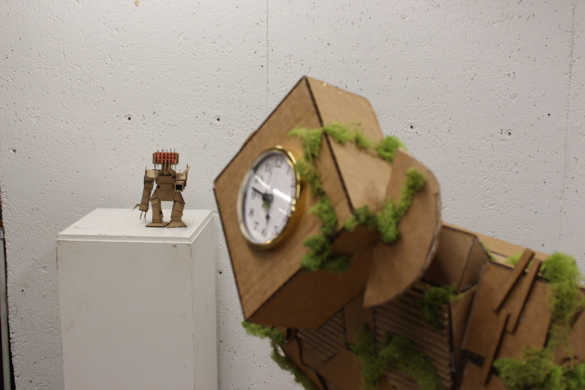 And below are photos with Clock Monkey and his friend, a little cardboard creature.